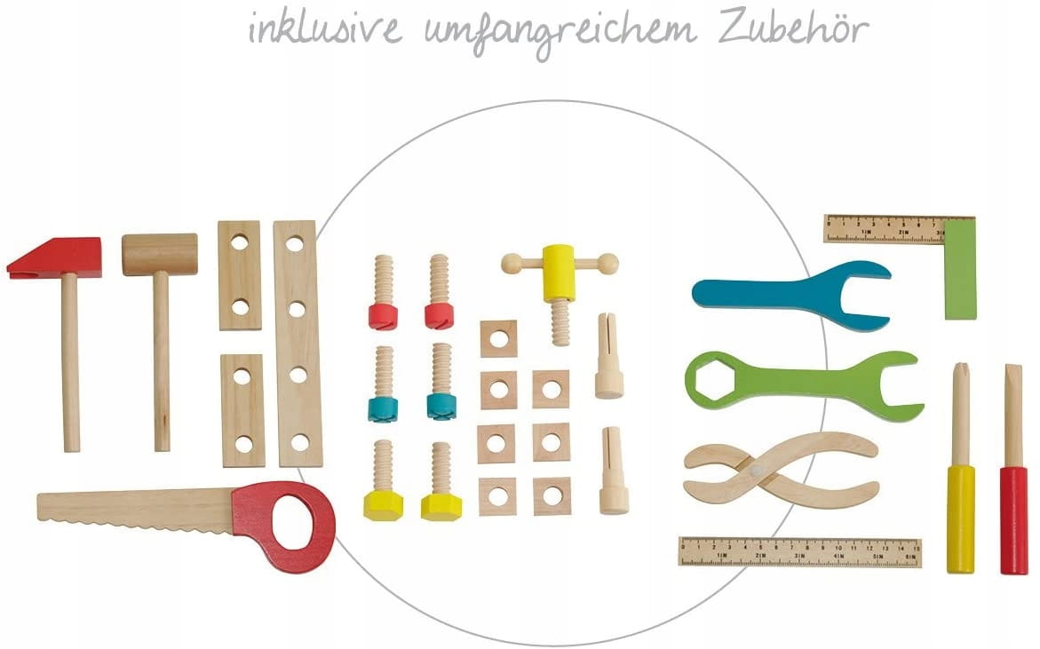 - Tu je zverák bohatý na náradie, ako je kladivo, píla a mnoho skrutiek a matíc v sade - vhodné kladkové a stavebné hračky pre malých profesionálov