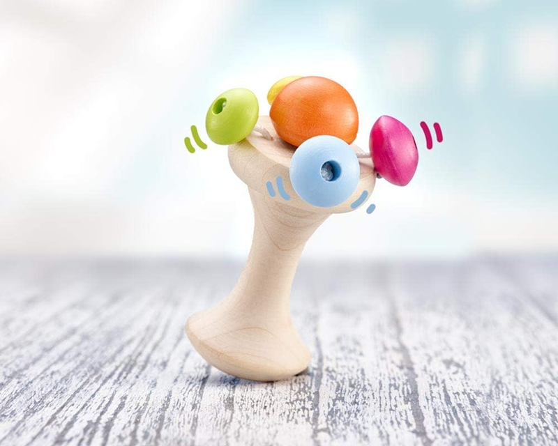 - Vybavená hrkálkou v podobe drevených guľôčok na šnúrkach.