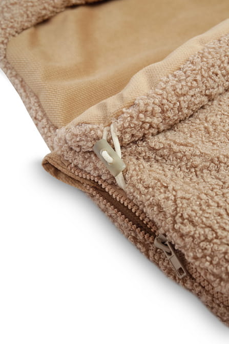 Poľská výroba zaručuje najvyššiu kvalitu spracovania a bezpečnosť – spací vak je vyrobený z certifikovaných materiálov šetrných k jemnej detskej pokožke. Jeho vnútro je z mimoriadne jemného velvetu, ktorý príjemne objíme pokožku bábätka. Vonkajšia vrstva z tkaniny bouclé účinne izoluje od vetra a chladu a zároveň očarí elegantnou, nadýchanou štruktúrou.