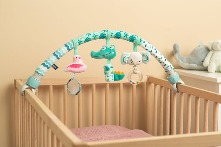 Vďaka univerzálnemu uchyteniu je možné oblúk jednoducho namontovať nielen na postieľku, ale aj na kočík a autosedačku, čím poskytuje dieťaťu zábavu počas cestovania alebo prechádzok.