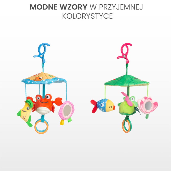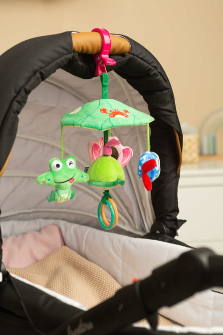 Praktický a ľahko použiteľný držiak umožňuje bezproblémové pripevnenie na kočík, autosedačku alebo postieľku, vďaka čomu je hračka vždy na dosah rúk bábätka. Pevné uchytenie zaručuje stabilitu a odolné materiály zabezpečujú dlhé hodiny radostnej hry – doma, na prechádzke aj na cestách!