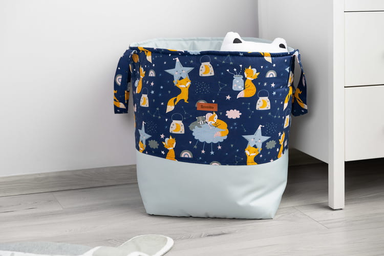 Kôš na hračky Medium je veľmi priestranný a mimoriadne odolný. Vďaka štvorcovému dnu pojme viac ako štandardné koše. Jeho úchyty na prenášanie sú vo vnútri spevnené popruhom, takže zvládne aj veľké množstvo hračiek. Spodná časť koša a jeho vnútro sú vyrobené z odolného polyesterového materiálu, ktorý je málo náchylný na odery a roztrhnutie, zatiaľ čo horná časť je ozdobená farebnou bavlnou, ktorá dodáva jedinečný šarm a robí z koša ozdobu detskej izby. Skvele poslúži aj ako kôš na prádlo alebo organizér na iné predmety. Spevnený je vrstvou silikónovej netkanej textílie, vďaka čomu si udržiava svoj tvar, a v prípade potreby ho môžete zložiť a uložiť do zásuvky. Ušitý na Slovensku z vysoko kvalitných materiálov.