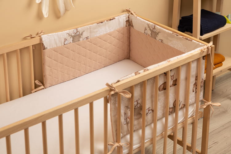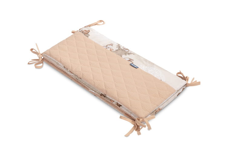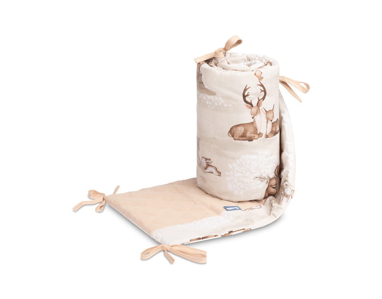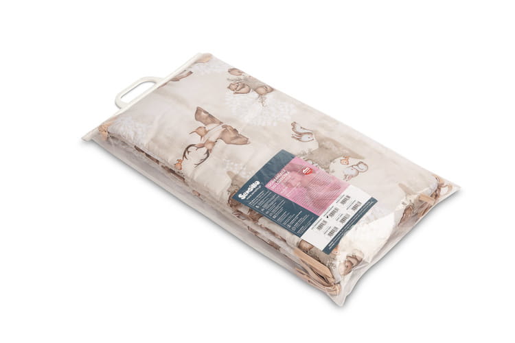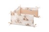 Chránič do postieľky pasuje do každej štandardnej detskej postieľky. Chránič je vyrobený z mäkkej bavlny s potlačou a príjemného mušelínu na dotyk. Polyesterová výplň ochráni dieťa pred zraneniami počas pohybu v postieľke. Udržiavanie chrániča v správnej polohe zabezpečujú stužky na pripevnenie k priečkam postieľky. Navrhnutý je pre postieľku s rozmermi 120x60 cm. Chránič bude skvelým doplnkom do výbavičky pre bábätko.