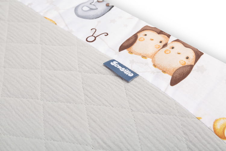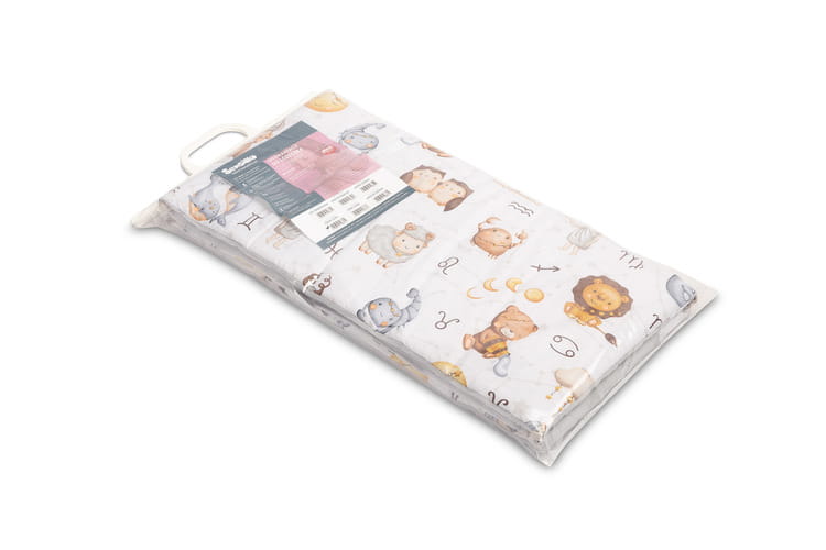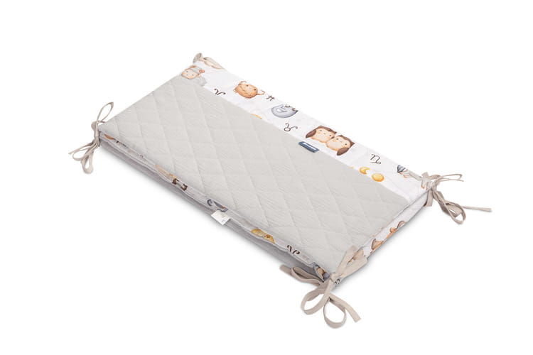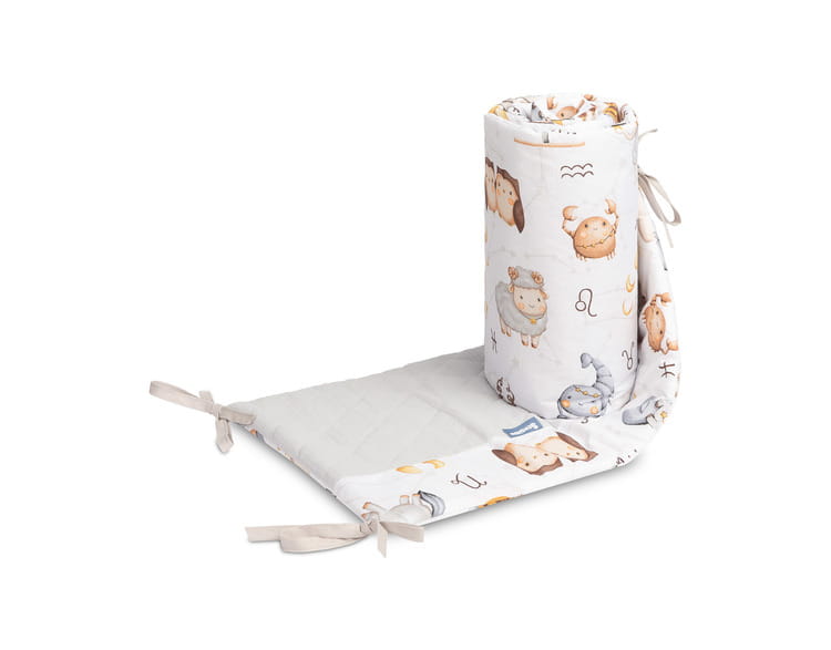 Chránič do postieľky pasuje do každého štandardného detského lôžka. Chránič je vyrobený z mäkkej bavlny s potlačou a príjemného mušelínu na dotyk. Polyesterová výplň ochráni dieťa pred zraneniami počas pohybu v postieľke. Udržiavanie chrániča v správnej polohe zabezpečujú stužky na pripevnenie k priečkam postieľky. Navrhnutý je pre postieľku s rozmermi 120x60 cm. Chránič bude skvelým doplnkom do výbavičky pre bábätko.