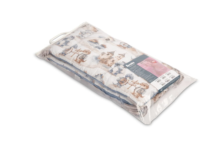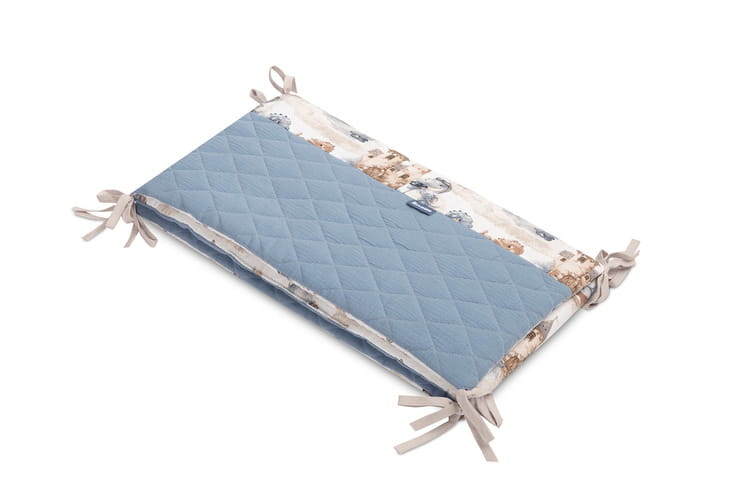 Chránič do postieľky pasuje do každého štandardného detského lôžka. Chránič je vyrobený z mäkkej bavlny s potlačou a príjemného mušelínu na dotyk. Polyesterová výplň ochráni dieťa pred zraneniami počas pohybu v postieľke. Udržiavanie chrániča v správnej polohe zabezpečujú stužky na pripevnenie k priečkam postieľky. Navrhnutý je pre postieľku s rozmermi 120x60 cm. Chránič bude skvelým doplnkom do výbavičky pre bábätko.