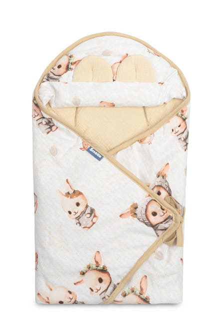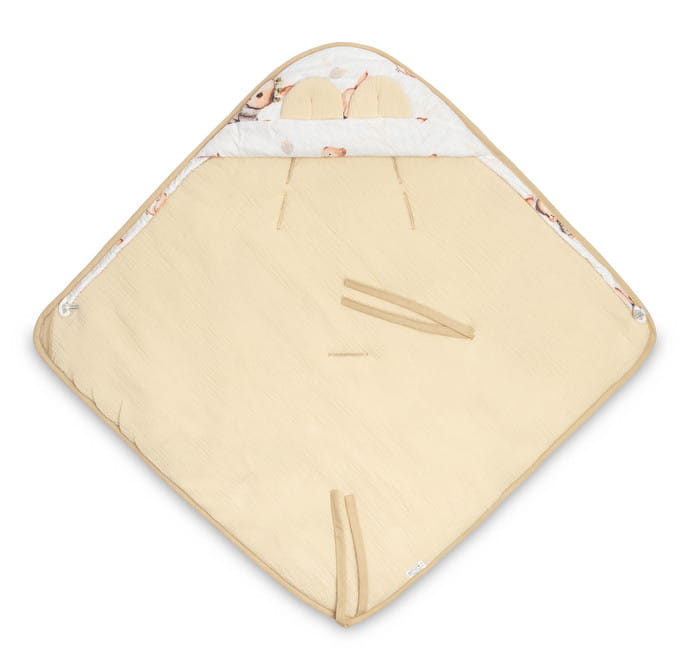 Mušelínový zavinovačka bola vytvorená s ohľadom na najmenšie deti. Je pohodlná a veľmi praktická počas cestovania. Je to alternatíva k teplému detskému oblečeniu. Vďaka otvorom na 3-bodové pásy je veľmi funkčná – nie je potrebné odpínať pásy, aby ste odokryli dieťa v nosiči. Zavinovačka má nastaviteľnú kapucňu. Je ušitá zo 100% mušelínu a bavlny.