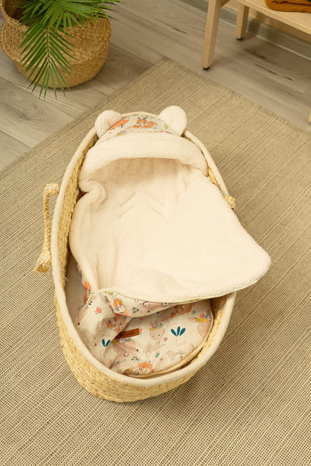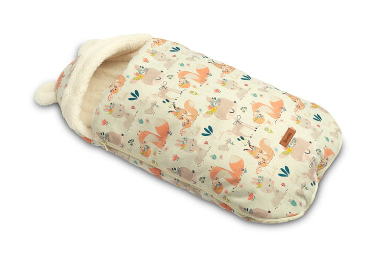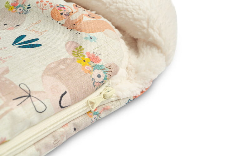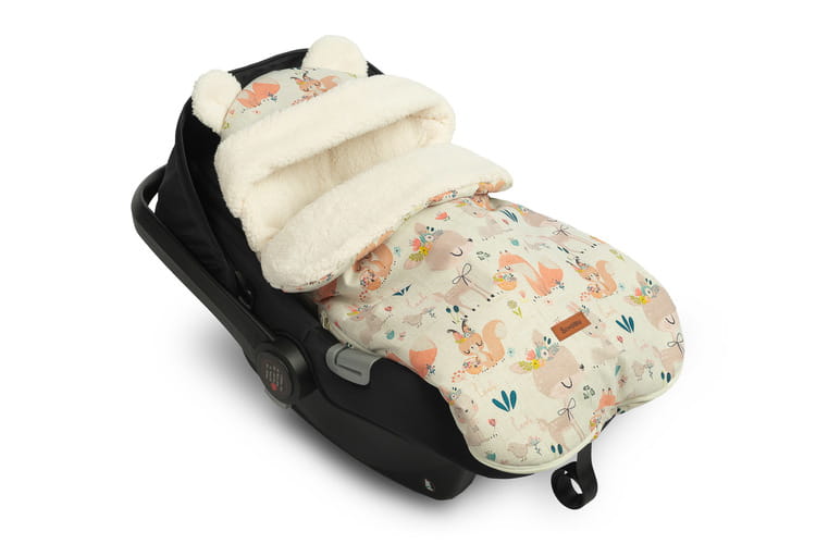 Spací vak do autosedačky a hlbokého kočíka bol navrhnutý s ohľadom na najmenšie deti. Prišité ušká na kapucni a jemný vzor dodávajú jeho roztomilý charakter. Vrchná vrstva je z vysoko kvalitnej vodeodolnej tkaniny s krásnym vzorom. Vo vnútri sa nachádza nadýchané silikónové vlákno, ktoré chráni pred chladom. Vnútornú vrstvu tvorí veľmi jemný a príjemný plyš, ktorý poskytuje dodatočné teplo. Má dva zipsy, ktoré umožňujú rozopnutie spacieho vaku z ľavej alebo pravej strany, ako aj úplné odopnutie prednej časti. Spací vak má otvory na 3-bodové bezpečnostné pásy. Je vhodný na použitie v nosičoch, hlbokých kočíkoch a dokonca aj na sánkach. Je určený pre deti vo veku od 0 do 18 mesiacov.