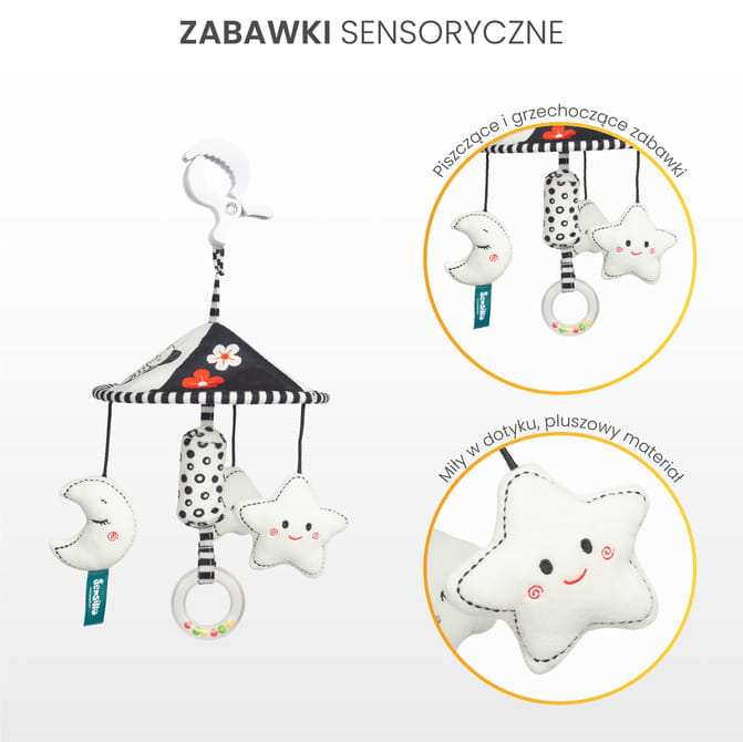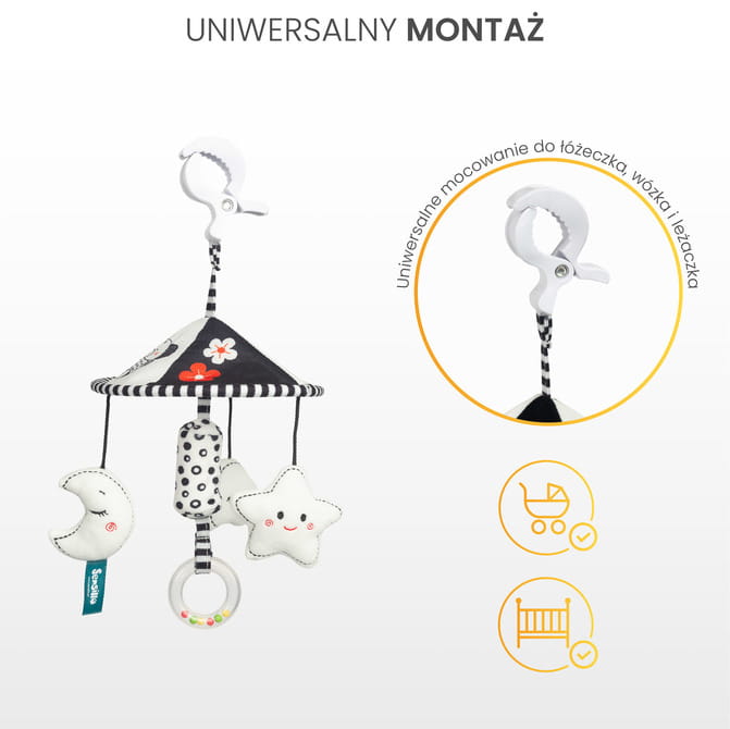 SENSILLO cestovný kolotoč NA KOČÍK BLACK&WHITE S HVIEZDIČKOU