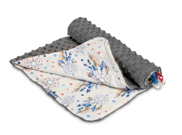 Ľahká deka Minky je vynikajúcim riešením na jarné a letné prechádzky. Vyrobená z jemnej bavlny a mäkkej tkaniny minky, podľa potreby môže byť používaná obojstranne. Každý vzor deky má iný farebný potlač. Na deke sa nachádzajú aj farebné stužky, ktoré zaujmú každé bábätko. Univerzálna ľahká deka do kočíka alebo postieľky s rozmerom 75×100 cm.