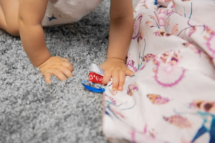- na deke sme umiestnili farebné stužky, ktoré zaujmú každé bábätko