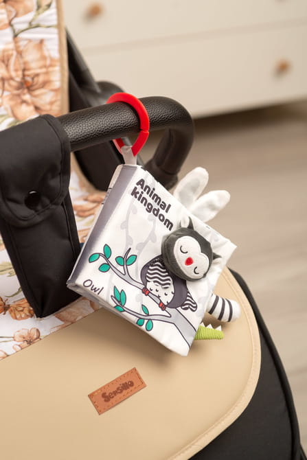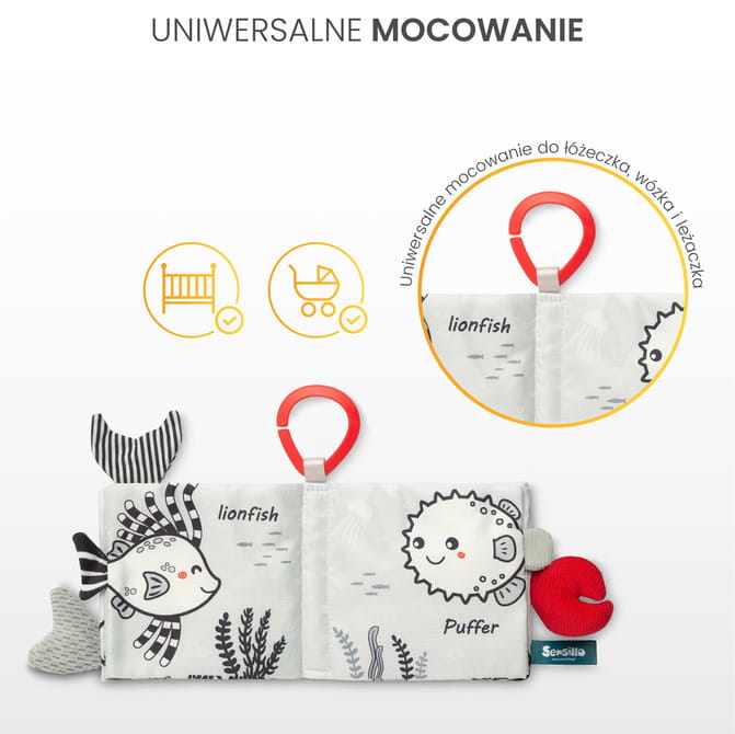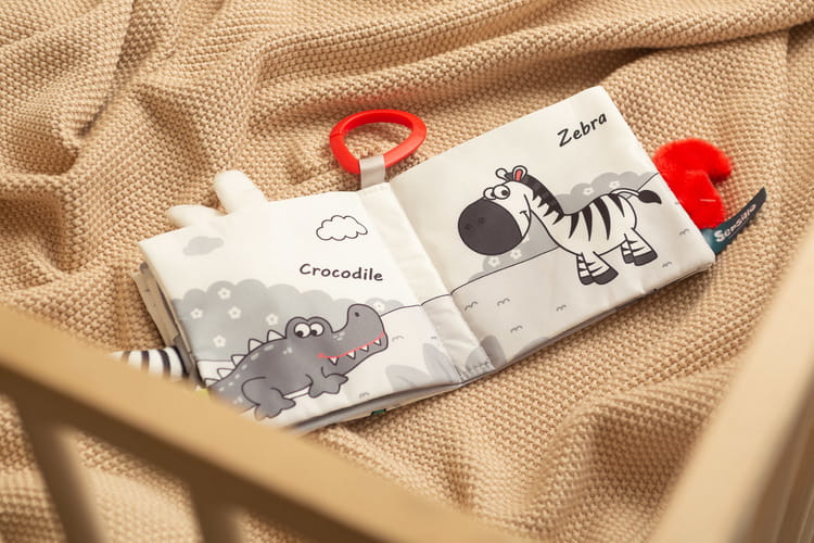 Senzorická knižka v čierno-bielej farebnej kombinácii je unikátna hračka vytvorená na stimuláciu zmyslov dieťaťa. Spája ilustrácie s rôznymi textúrami a zvukmi, čím ponúka bábätkám bohaté senzorické zážitky. Jednoduchá, no zaujímavá paleta farieb v odtieňoch čiernej a bielej účinne stimuluje zrak najmenších. Každá strana knižky obsahuje rôzne štruktúry materiálu a prvky, ktoré pískajú alebo šuštia. Vďaka použitiu bezpečných materiálov a mäkkých strán je knižka ideálna na použitie doma aj na cestách.