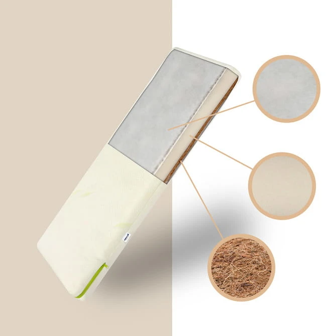 Matrac Pohánka-Pena-Kokos zabezpečuje pohodlie a pokojný spánok deťom. Jeho unikátna vrecková pohánková vložka obsahuje zložky, ktoré brzdia rozvoj mikroflóry a roztočov. Nepruží, poskytuje správnu oporu a prispôsobuje sa polohe dieťaťa počas spánku. Vďaka vrstvenej konštrukcii (vrstva pohánkovej vložky a kokosovej rohože v kombinácii s penou T21) s celkovou hrúbkou 8 cm zabezpečí pohodlný a pokojný spánok. Mäkký poťah z tkaniny Aloe Vera je mimoriadne odolný a má antialergické a antibakteriálne vlastnosti, pričom v prípade znečistenia ho možno ľahko zložiť a vyprať.