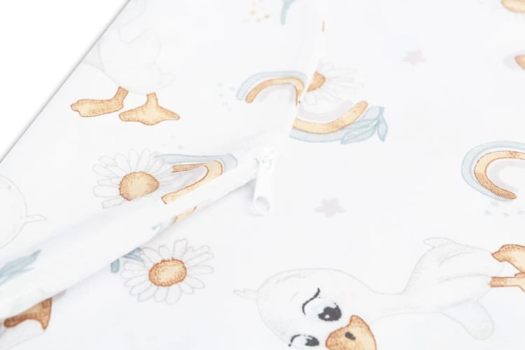 Povlak pasuje na dojčiaci vankúš v rozmere cca 60x40x11 cm. Zapína sa na zips, takže ho ľahko zložíte a vyperiete. Vyrobený je zo 100% certifikovanej, na dotyk príjemnej bavlny. Má vzory a farby, ktoré sa hodia do detskej izby. Vyrobené v Poľsku.