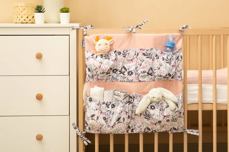 Organizér na postieľku nie je len praktický produkt, ale aj ozdoba detskej izby. Má spolu 5 vreciek spevnených gumičkou, ktoré pojmú všetky potrebné doplnky. Organizér je možné jednoducho pripevniť na rám postieľky pomocou našitých stužiek. Je dodatočne vystužený vrstvou silikónového rúna. Z vonkajšej strany je obšitý 100% bavlnou. Organizér je možné skombinovať s ďalšími produktmi z našej ponuky.