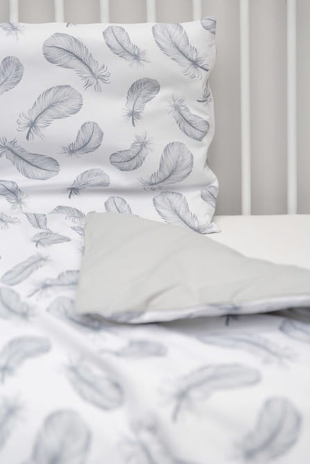 Súprava posteľnej bielizne je ušitá z príjemnej na dotyk a odolnej 100% bavlny. Pripravené farebné kombinácie v kolekcii sa dokonale hodia do každej detskej izby. Súprava obliečok je prispôsobená štandardným detským perinám - obsahuje obliečku na paplón s rozmermi 100x135cm a obliečku na vankúš 40x60cm. Posteľná bielizeň je zapínaná na zips.