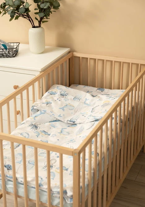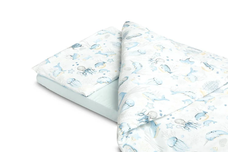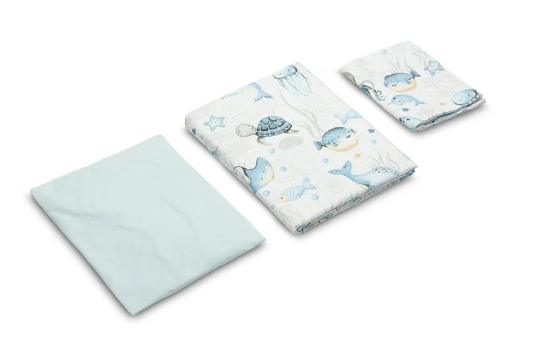 Súprava obsahuje obliečky na perinku a vankúš, ako aj prestieradlo s gumou. Je ušitá z príjemnej na dotyk a odolnej 100% bavlny. Určená je do postieľok 120x60 cm. Obliečky na perinu a vankúš sú na zips. Prestieradlo má všitú gumu. Farebné kombinácie spájajúce vzorovanú bavlnu s jednofarebným prestieradlom budú ideálne pasovať do každej detskej izby.