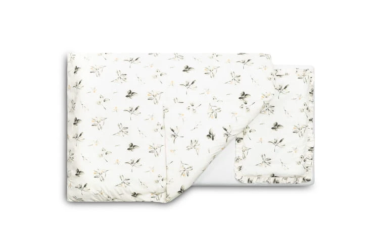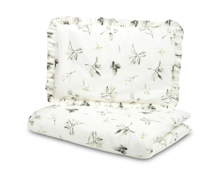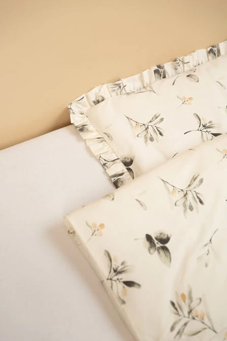 2-dielna posteľná bielizeň s volánom je ušitá z príjemnej na dotyk a odolnej bavlny. Farebné kombinácie budú ideálne pasovať do každej detskej izby. Súprava obsahuje obliečku na perinu s rozmermi 100x135cm a obliečku na vankúš 40x60cm. Obliečka na perinu je na zips, zatiaľ čo vankúš je na preklad.