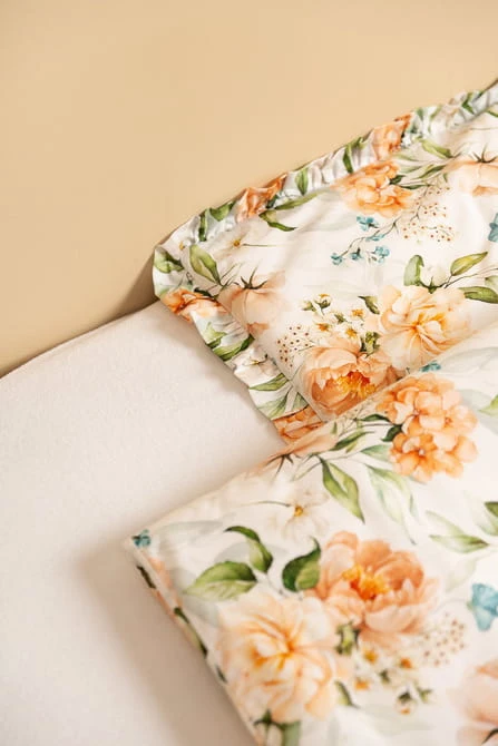 2-dielna posteľná bielizeň s volánom je ušitá z príjemnej na dotyk a odolnej bavlny. Farebné kombinácie budú ideálne pasovať do každej detskej izby. Súprava obsahuje obliečku na perinu s rozmermi 100x135cm a obliečku na vankúš 40x60cm. Obliečka na perinu je na zips, zatiaľ čo vankúš je na preklad.