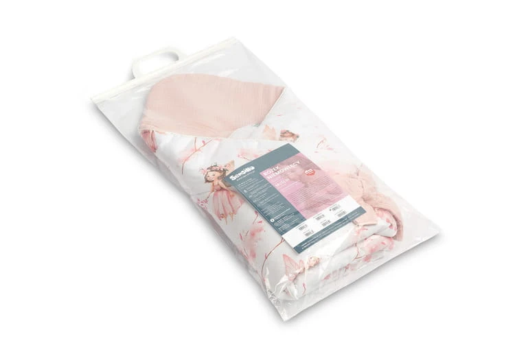 Jednostranný mušelínový zavinovačka pre bábätká bola vytvorená s ohľadom na novorodencov a dojčatá. Zapínanie na suchý zips umožňuje pohodlné držanie dieťaťa počas kŕmenia a uspávania. Po rozložení môže byť zavinovačka úspešne použitá ako prikrývka do postieľky alebo detského kočíka. Môže tiež slúžiť ako hracia podložka. Vyrobená je z bavlnených tkanín: potlačenej bavlny a mušelínu. Výplň zavinovačky tvorí antialergické nadýchané silikónové vlákno. Vysokú kvalitu spracovania podčiarkuje estetická lemovka.