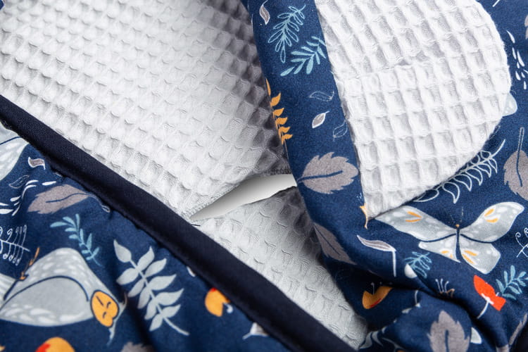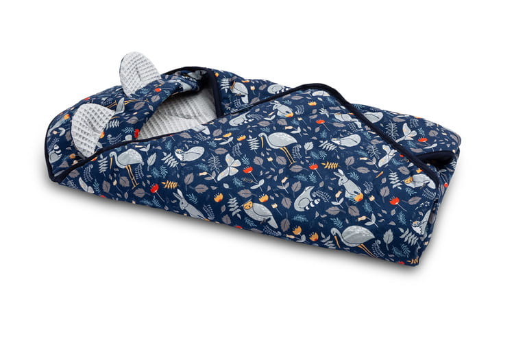 Zavinovačka bola vytvorená s ohľadom na najmenšie deti. Je pohodlná a veľmi praktická počas cestovania. Je to alternatíva k teplému detskému oblečeniu. Vďaka otvorom na 3-bodové pásy je veľmi funkčná – nie je potrebné odpínať pásy, aby ste odhalili dieťa v nosiči. Zavinovačka má nastaviteľnú kapucňu s roztomilými uškami. Je ušitá zo 100% bavlny.