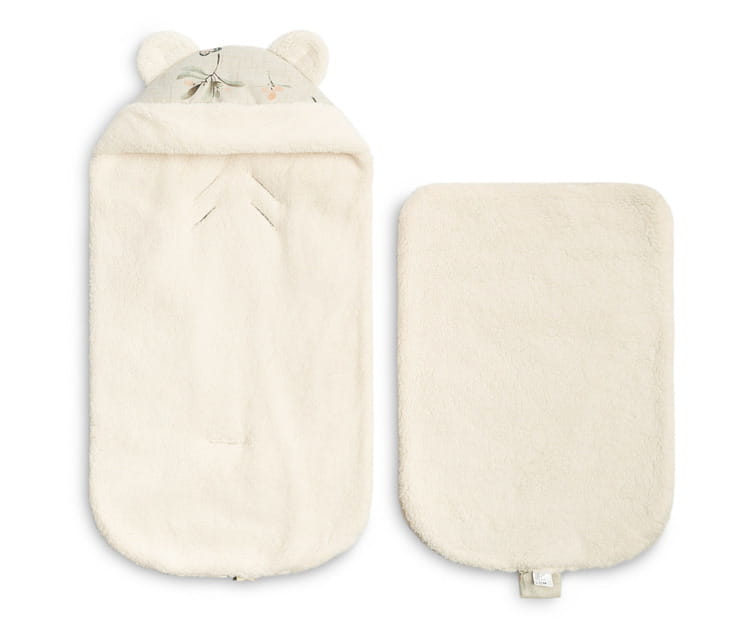 Spací vak do autosedačky a hlbokého kočíka bol navrhnutý s ohľadom na najmenšie deti. Prišité ušká na kapucni a jemný vzor dodávajú jeho roztomilý charakter. Vrchná vrstva je z vysoko kvalitnej vodeodolnej tkaniny s krásnym vzorom. Vo vnútri sa nachádza nadýchané silikónové vlákno, ktoré chráni pred chladom. Vnútornú vrstvu tvorí veľmi jemný a príjemný plyš, ktorý poskytuje dodatočné teplo. Má dva zipsy, ktoré umožňujú rozopnutie spacieho vaku z ľavej alebo pravej strany, ako aj úplné odopnutie prednej časti. Spací vak má otvory na 3-bodové bezpečnostné pásy. Je vhodný na použitie v nosičoch, hlbokých kočíkoch a dokonca aj na sánkach. Je určený pre deti vo veku od 0 do 18 mesiacov.