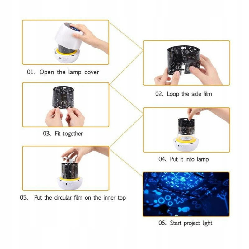 - Po zložení tienidla sa nočná lampa zmení na projektor.