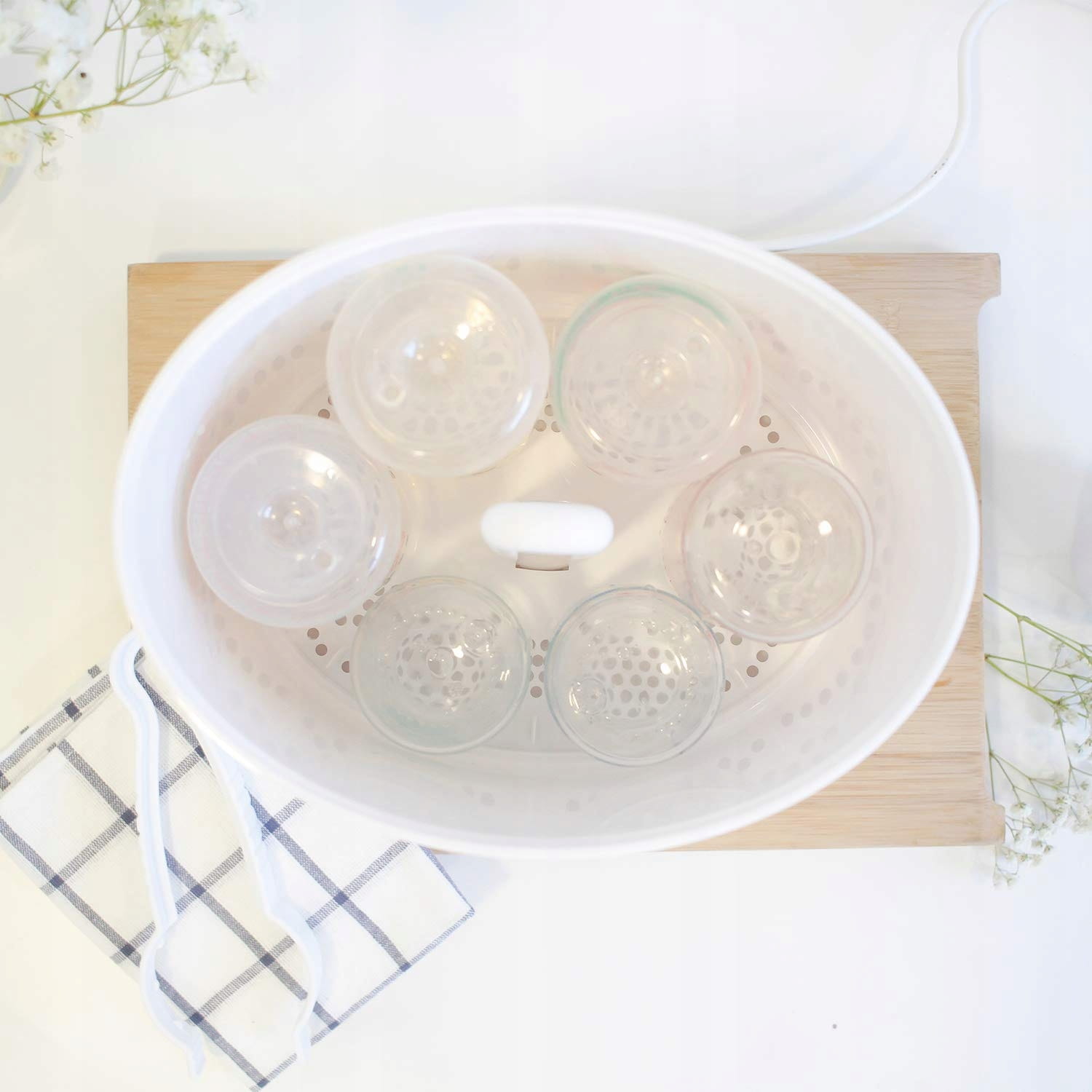 - Sterilizácia až 6 fliaš s objemom 360 ml a príslušenstva.
