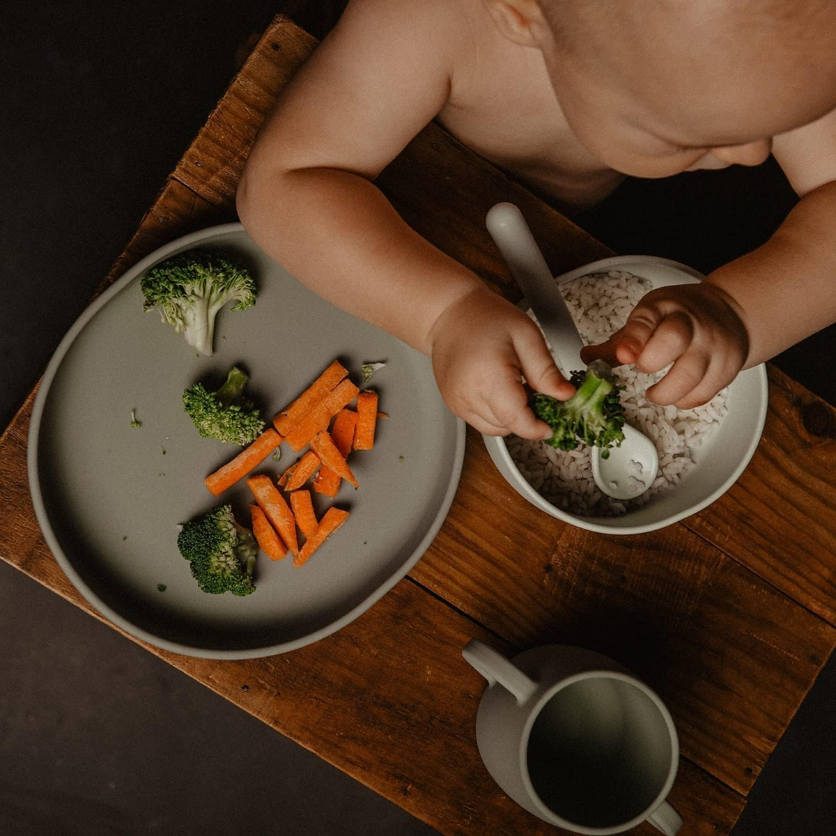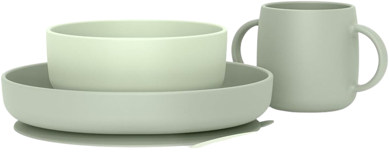 - POTRAVINÁRSKA SILIKÓNOVÁ TRIEDA. Silikónový jedálenský set pre bábätká od 4 mesiacov. 4 ks detský riad: klasický tanier + miska + pohárik + ergonomická lyžička