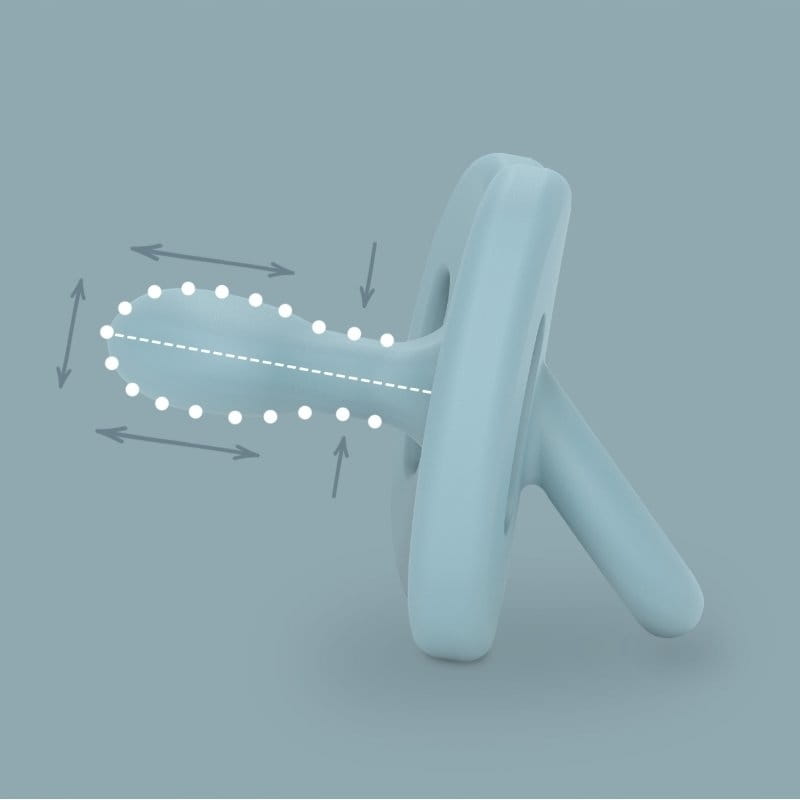 Elastický, tenký, ultra mäkký silikón. Napodobňuje textúru a tvar materskej bradavky, zároveň sa dokonale prispôsobuje tvaru podnebia bábätka.