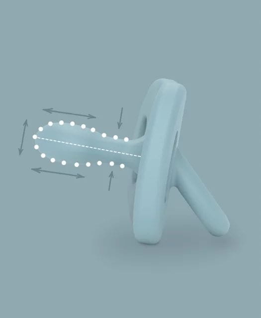 Elastický, tenký, ultra mäkký silikón. Napodobňuje textúru a tvar matkinho prsníka, zároveň sa dokonale prispôsobuje tvaru podnebia bábätka.