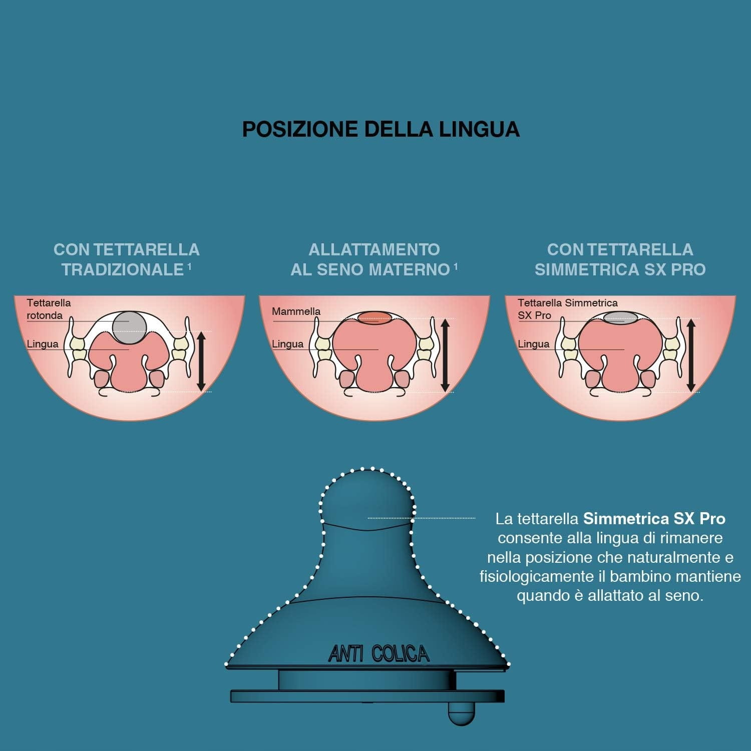 - Symetrický cumlík SX Pro udržiava jazyk v rovnakej prirodzenej polohe ako pri dojčení