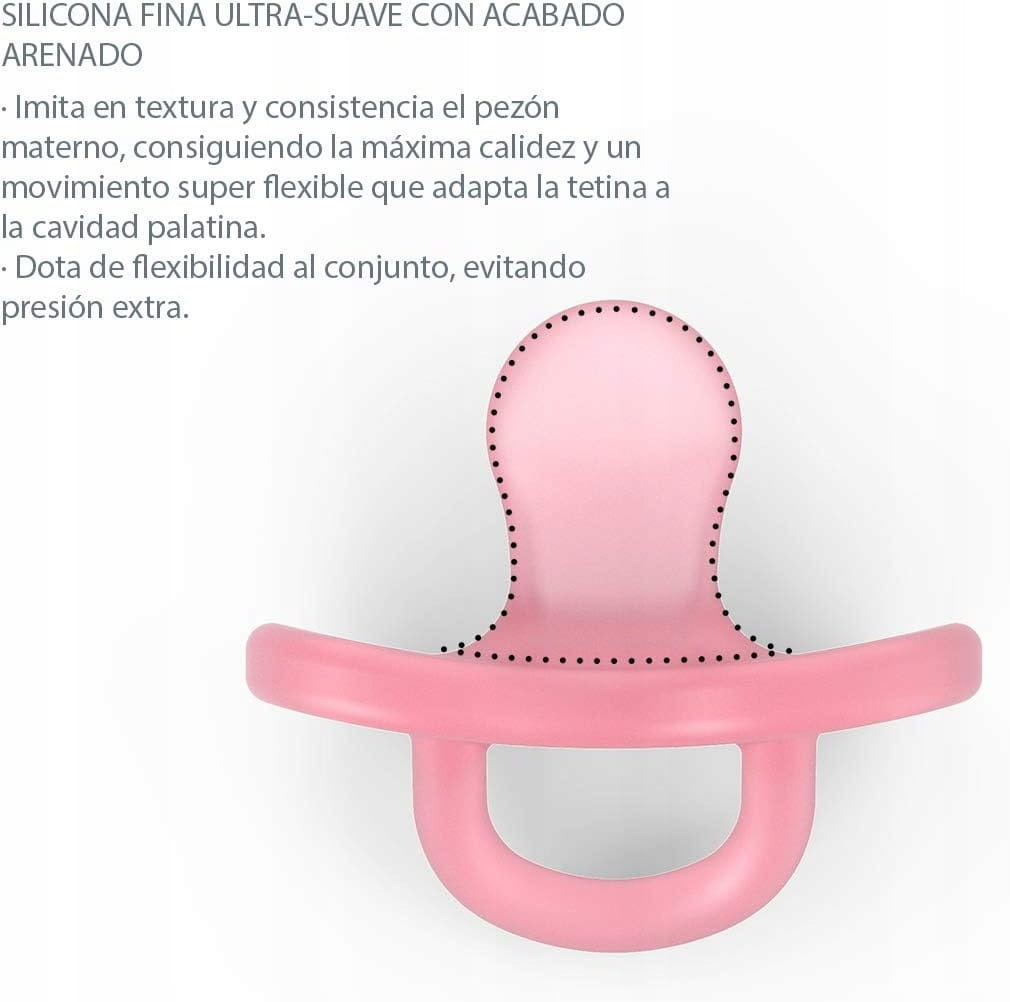 - Úplne silikónový cumlík s anatomickým, mimoriadne mäkkým, tenkým silikónovým cumlíkom, ktorý napodobňuje textúru a konzistenciu matkinho prsníka.