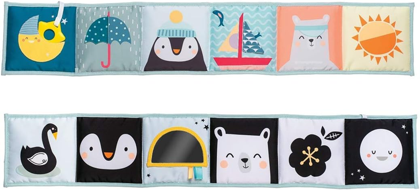 - Vybavená rôznymi textúrami, zrkadielkom, hryzátkom a šuštiacim papierom.