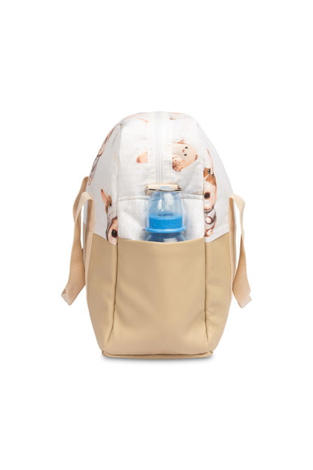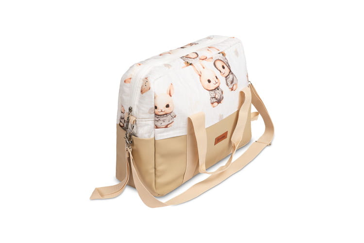 Taška z ekokože je ideálna nielen ku kočíku. Má mnoho výhod ako: spodok z ekokože, vnútorné vrecká, funkčné priehradky a podšívku odolnú voči zašpineniu. Farebná bavlna s potlačou zabezpečuje, že taška sa hodí k moderným kočíkom. Okrem toho je taška vybavená kovovými kovaniami, univerzálnymi úchytmi na zavesenie na rám a praktickým ramenným popruhom. Bude dostupná v 5 vzoroch.