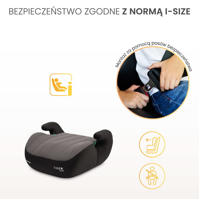 Detská autosedačka Tiger i-Size typu booster je ergonomicky navrhnuté riešenie pre staršie deti, ktoré dosiahli vhodnú hmotnosť a výšku, umožňujúce prechod z tradičnej autosedačky na podsedák.
