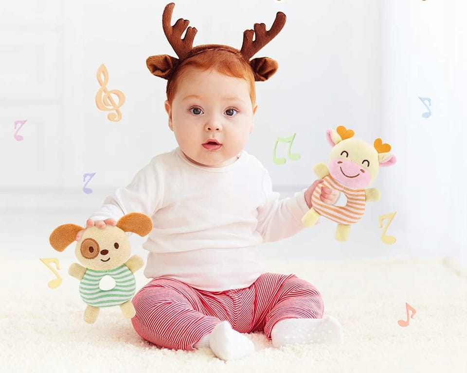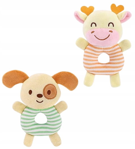TOLOLO plyšové hračky s hrkálkou a pískatkom PES a ŽIRAFA 13,5 cm