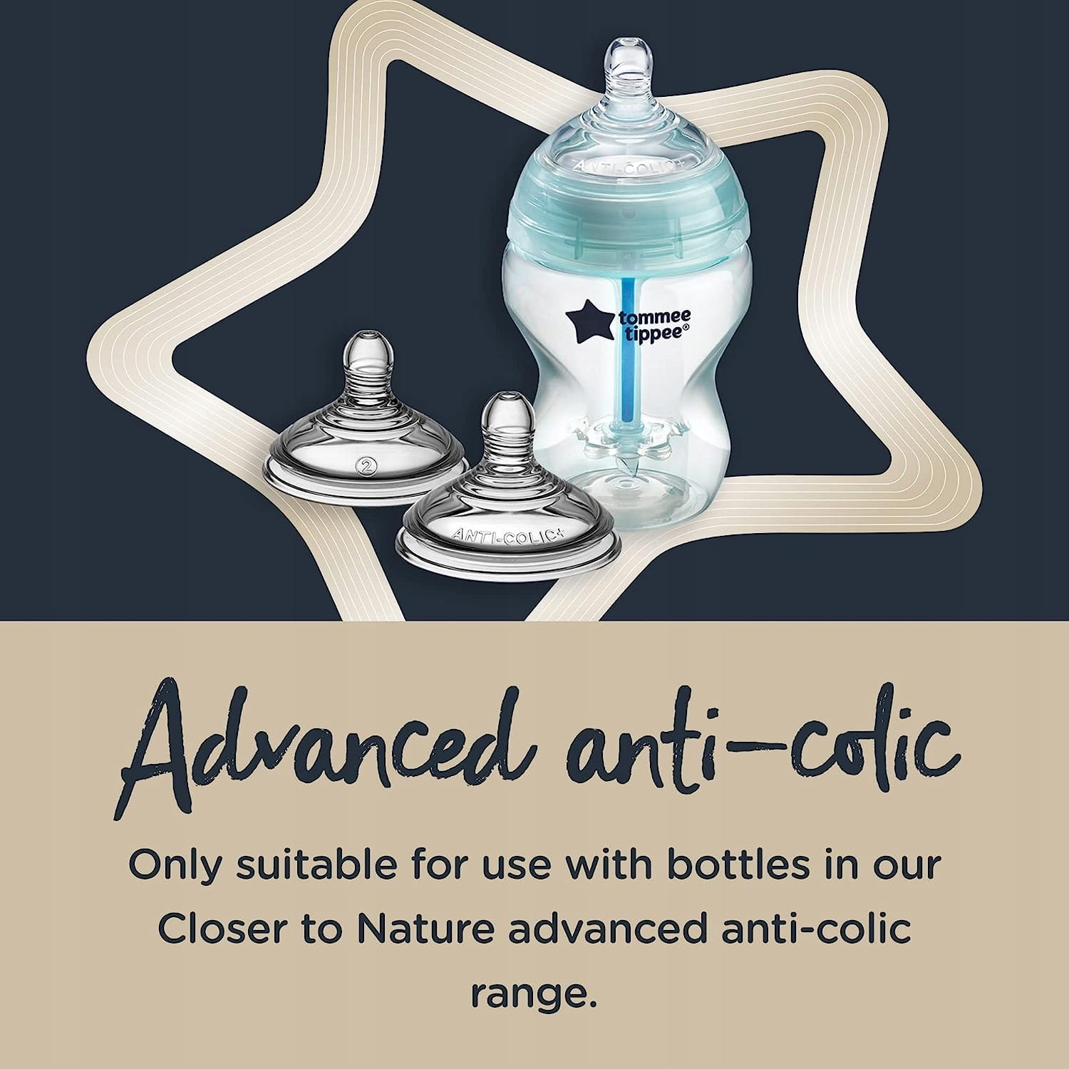 - Rôzne intenzity prietoku: cumlíky pre antikolikové fľaše Advanced Anti-Colic sú dostupné s rôznymi intenzitami prietoku podľa potrieb rastúceho dieťaťa