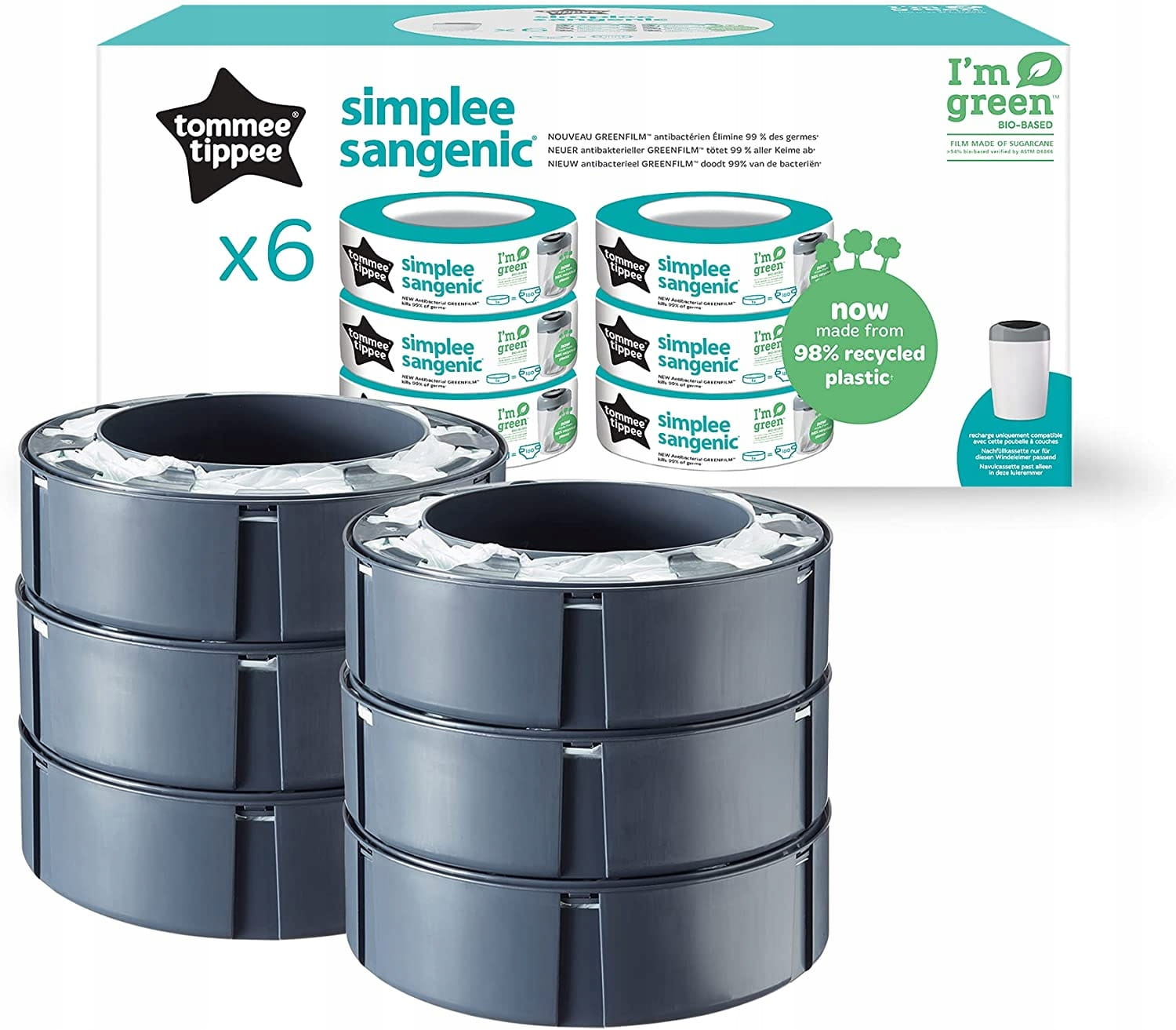 - Simplee Sangenic: náplne do koša na plienky Simplee Sangenic sú kompatibilné iba so systémom likvidácie plienok Tommee Tippee Simplee Sangenic
