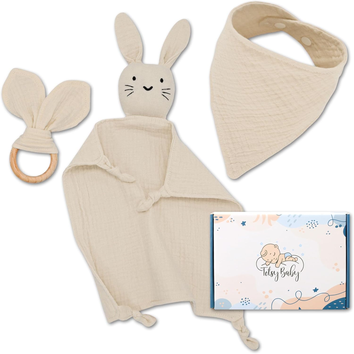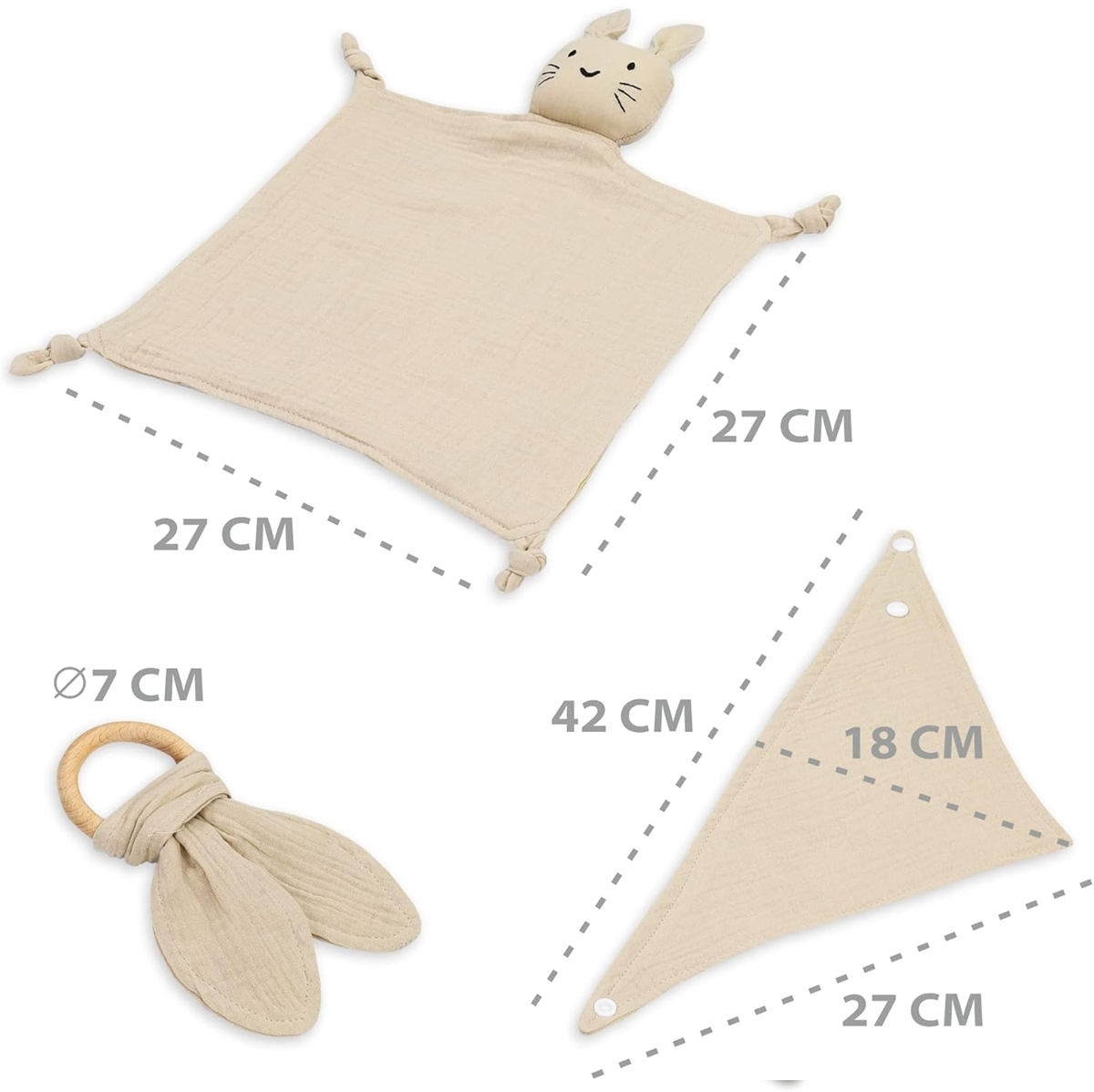TOTSY BABY mušelínový komforter a podbradník, drevené hryzátko 27x27 cm ZAJAC