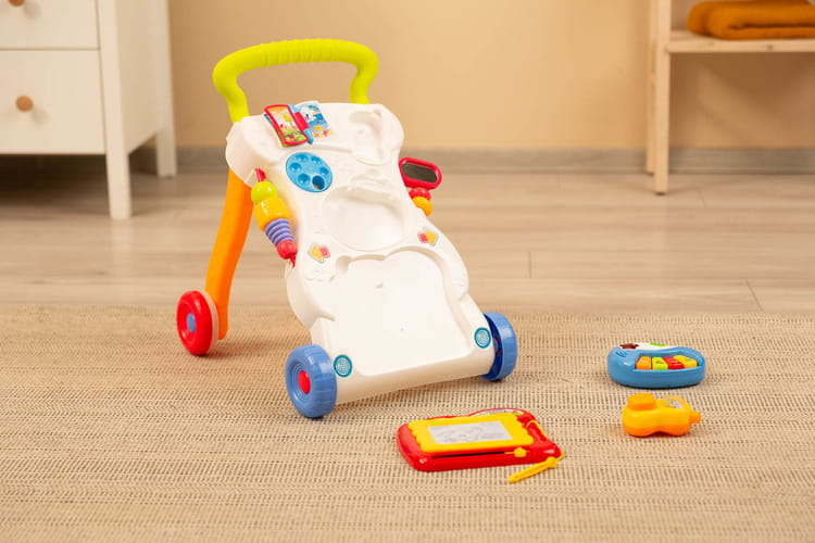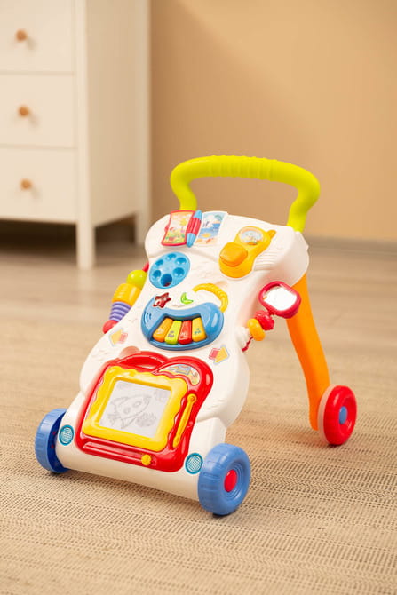 Hudobný chodítko od Toyz je ďalšou podporou pri učení chôdze a rozvoji dieťaťa. Hračka pozitívne ovplyvňuje kognitívny rozvoj vďaka prvkom, ktoré prebudia zvedavosť bábätka. Okrem mnohých motorických hračiek má aj odnímateľný telefón, kresliacu tabuľu a na batérie napájanú svietiacu hudobnú hračku, ktorá poskytuje veľa možností na hranie. Chodítko má možnosť regulácie odporu koliesok pomocou skrutkovača.