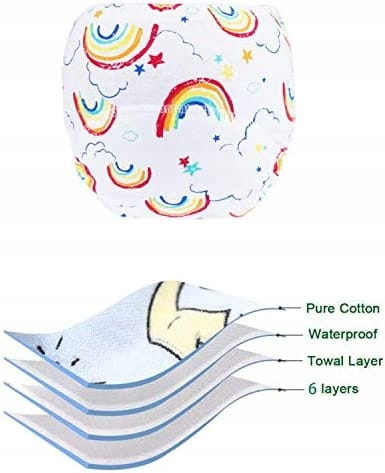 - Tréninkové nohavičky pre bábätká: 100% bavlna (vložka) + 15% vodeodolná vrstva PU, možno prať v práčke alebo prať vo vode pri teplote 30 stupňov, mäkké a pohodlné. Tréningové nohavičky je možné opakovane použiť.