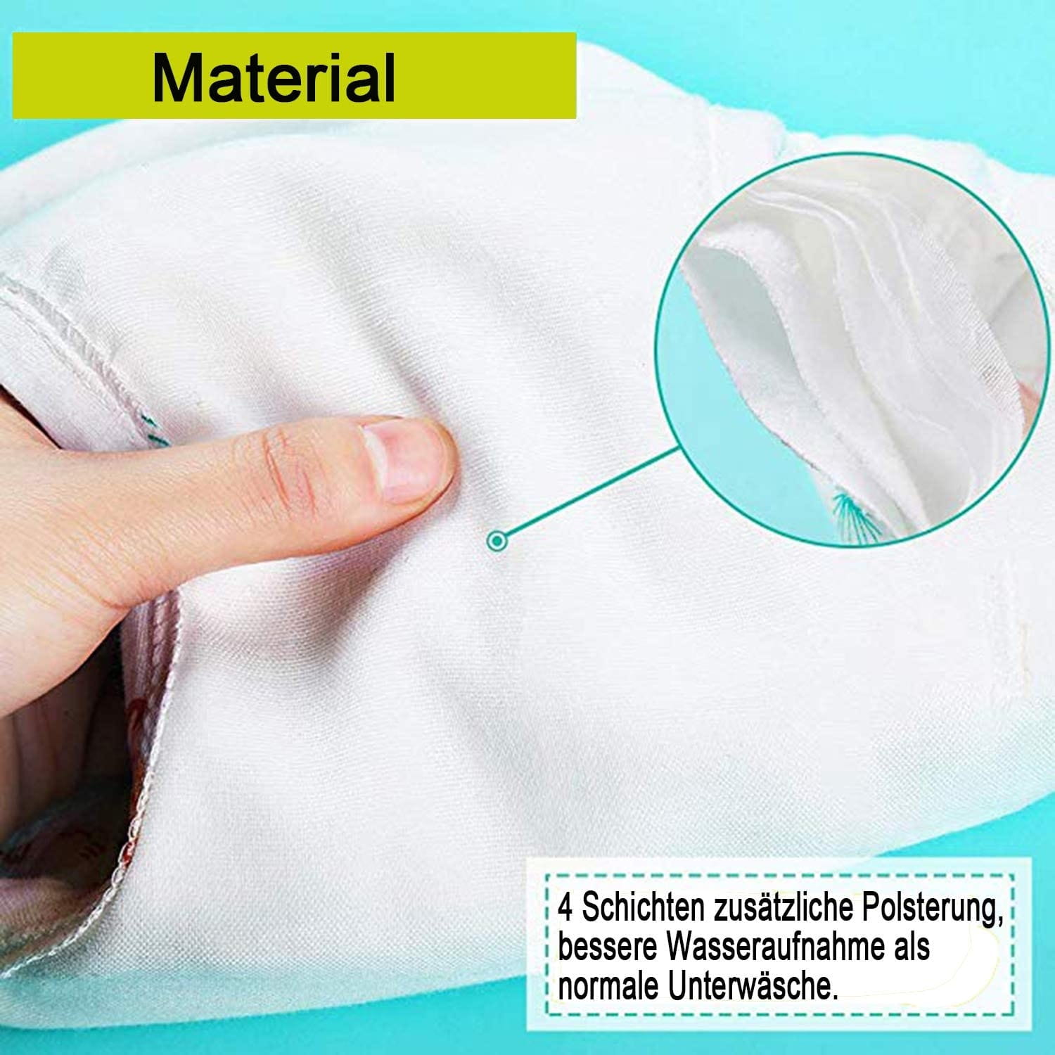 - Tréninkové nohavičky pre bábätká: 100% bavlna (vložka) + 15% vodotesná vrstva PU, možno prať v práčke alebo prať vo vode pri teplote 30 stupňov, mäkké a pohodlné. Tréningové nohavičky je možné opakovane použiť.