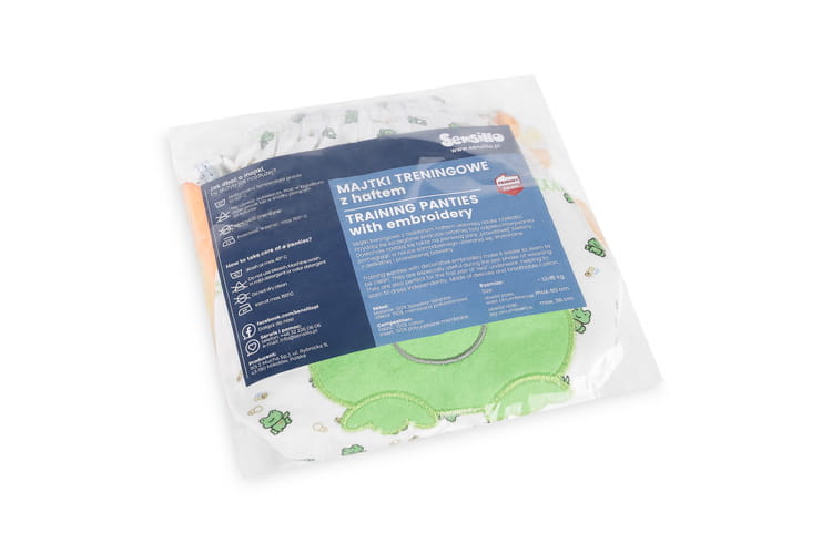 Tréningové nohavičky s ozdobnou výšivkou uľahčujú učenie sa čistoty. Sú obzvlášť užitočné počas poslednej fázy odplienkovania. Skvele sa hodia aj ako prvý pár "skutočnej" spodnej bielizne, pomáhajú pri učení samostatného obliekania. Vyrobené z jemnej a priedušnej bavlny.