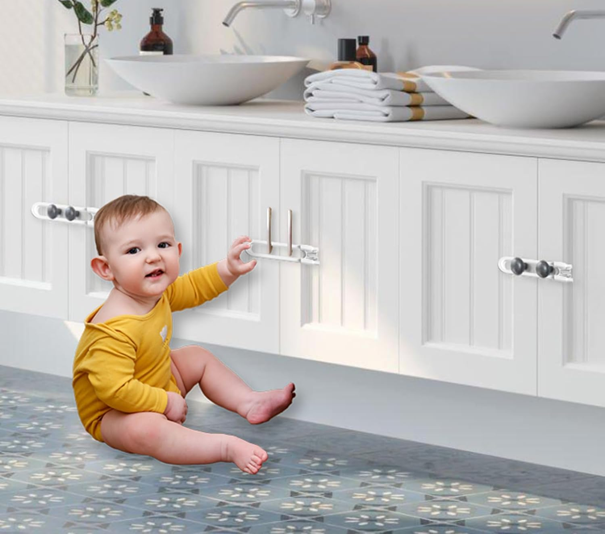 - Zabezpečenie chráni deti pred prístupom do skriniek s dvojkrídlovými dvierkami.
