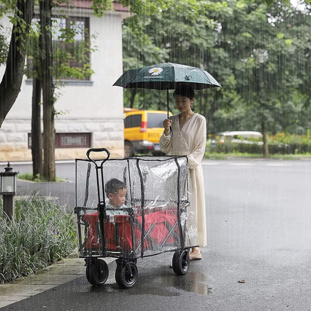 - Ochrana pred dažďom na detský kočík: pláštenka na kočík je vyrobená z PVC plastu, s vysokou priehľadnosťou, ekologická a bez zápachu, vetruodolná, odolná voči dažďu, prachu, prasknutiu, trvácna, netoxická, neškodná pre ľudí, s dobrou mäkkosťou a pružnosťou.