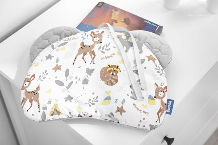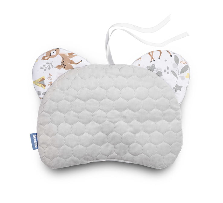 Vankúšik do kočíka MIŠ sa skvele hodí už od prvých mesiacov života ako mäkká podložka pod hlavičku doma aj na cestách. Pasuje ako do postieľky, tak aj do kočíka (možno ho priviazať k vložke z rovnakej kolekcie). Vankúšik je obojstranný – z jednej strany má vrstvu zo 100% bavlny, z druhej mäkučký velvet. Vankúšik má prišité stužky umožňujúce spojenie s vložkou do kočíka. V prípade potreby ich možno ľahko odstrihnúť.