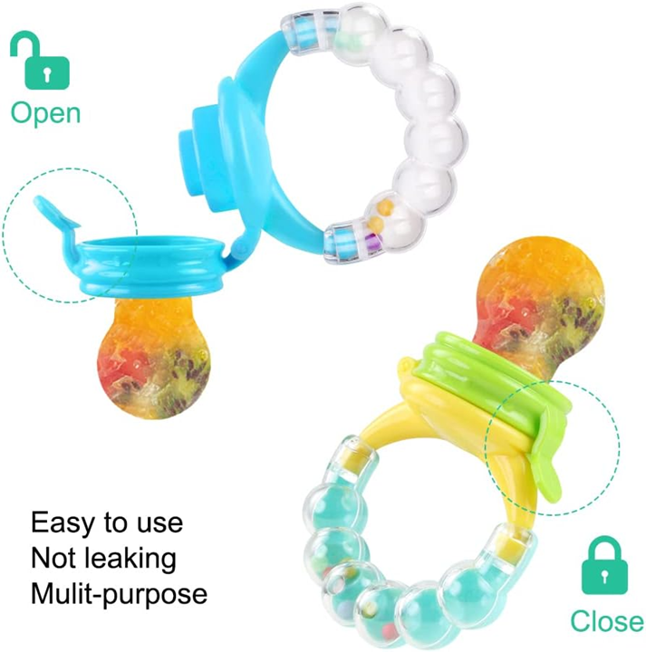 - Premyslený dizajn - konštrukcia zámku a malé otvory v kŕmení pre bábätká zabraňujú uduseniu, ktoré môže byť spôsobené malými kúskami jedla. Zabudované farebné korálky, vibrujúci zvuk priťahuje pozornosť dieťaťa. Náš kŕmič pre bábätká má ideálnu veľkosť a funkciu, vďaka čomu ho vaše dieťa môže ľahko uchopiť a držať, podporuje samostatné jedenie a zdravý vývoj dieťaťa.