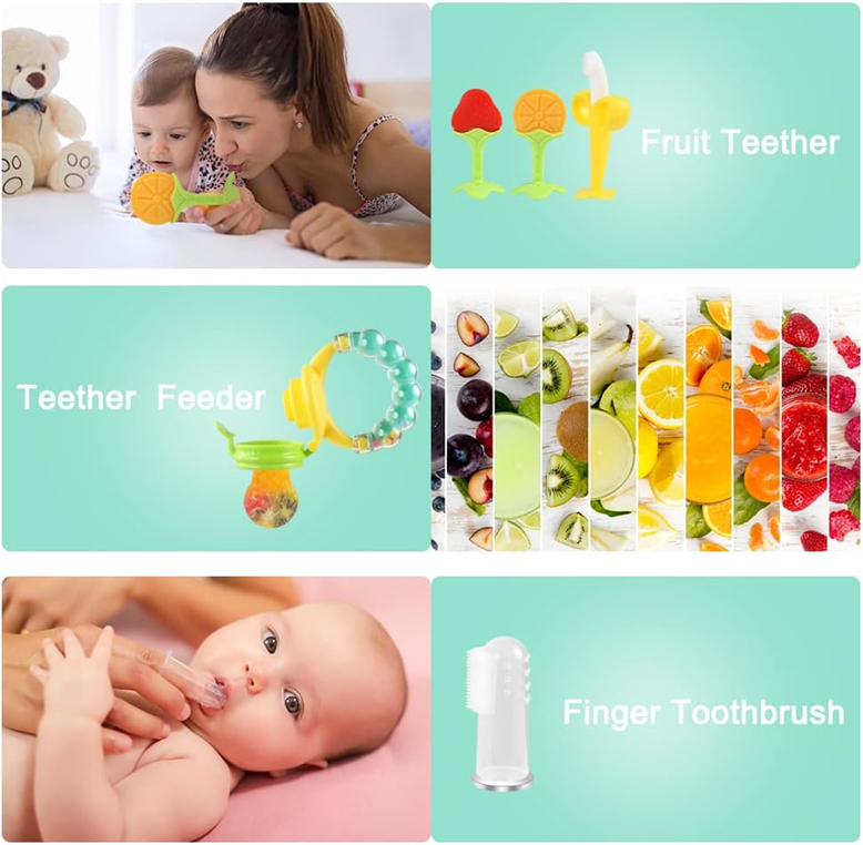 - Ideálna sada na kŕmenie bábätiek - sada na kŕmenie obsahuje 2 ovocné cumlíky pre bábätká, 1 silikónovú mäkkú lyžičku, 2 hryzátka na ovocie, 1 banánové hryzátko, 2 kefky na zuby na prst, 1 pásik na cumlík a 3 rôzne veľkosti 6 silikónových cumlíkov (veľkosť S je vhodná pre deti vo veku 3-6 mesiacov. Veľkosť M je vhodná pre deti vo veku 6-12 mesiacov. L je vhodná pre deti vo veku 12-24 mesiacov.).