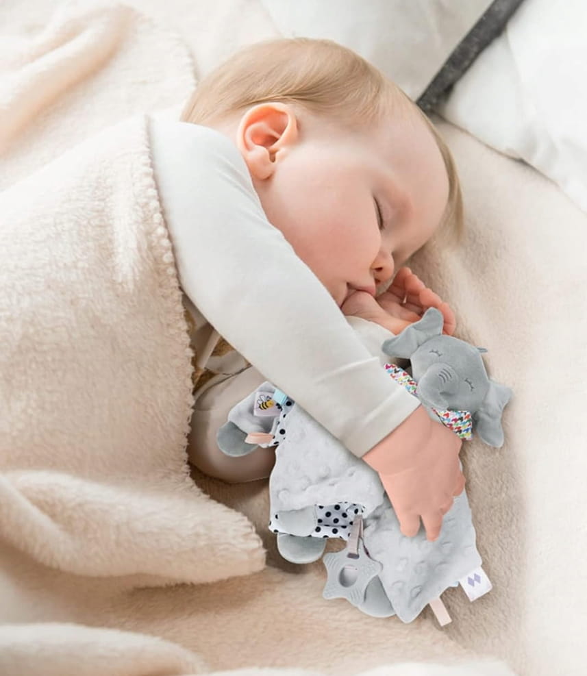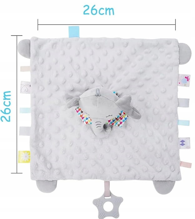 Používajte pod dohľadom dospelej osoby; pravidelne kontrolujte visačky a švy. Nepoužívajte ako pokrývku tváre počas spánku.