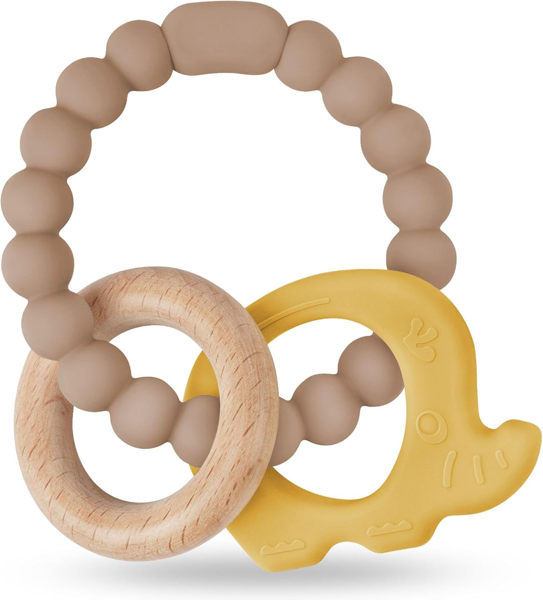 Hryzátko „Sloník“ — silikón + bukové drevo, textúrované, pre malé rúčky